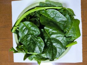 7月に収穫した「ジャガイモ」、春野菜の「シュンギク」「ミズナ」「レタス」や「ブラックベリー」(少々)の収穫は終了。