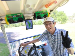 今年の猛暑に備え、乗用カートに4人専用のクーラー設置