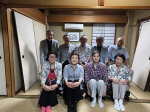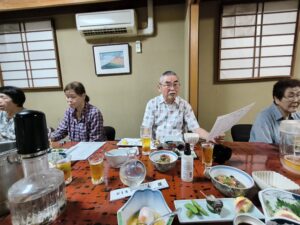 この度、幹事の声掛けで開いた懇親会に男性5人、女性4人が出席し、久しぶりの積もる話も肴に場も盛り上がり大いに楽しんだ。次回は「米寿」?で再会しましょうと解散した。