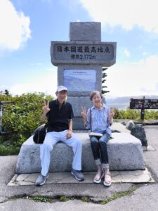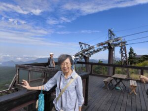 標高2307mの日本最高地点の満天ビューテラスで絶景を楽しむ。下りは渋峠ロマンスリフトで下山した。