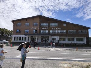 県境に建ったホテル 左側「ぐんま」右側「ながの」の色分け