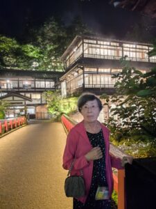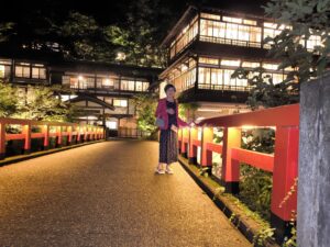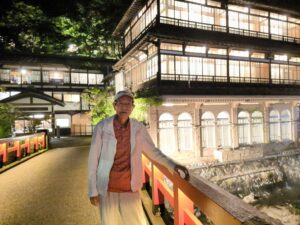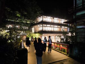 宿は早めに着いたので散策がてら「千と千尋の神隠し」に出てくる赤い橋のある「積善館」へ行ってみる。見物者、撮影者何人も。