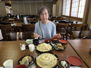 最後の立ち寄り先は、昼食会場の「上州物産館」で、日本三大うどん「水沢うどん御膳」をいただく。